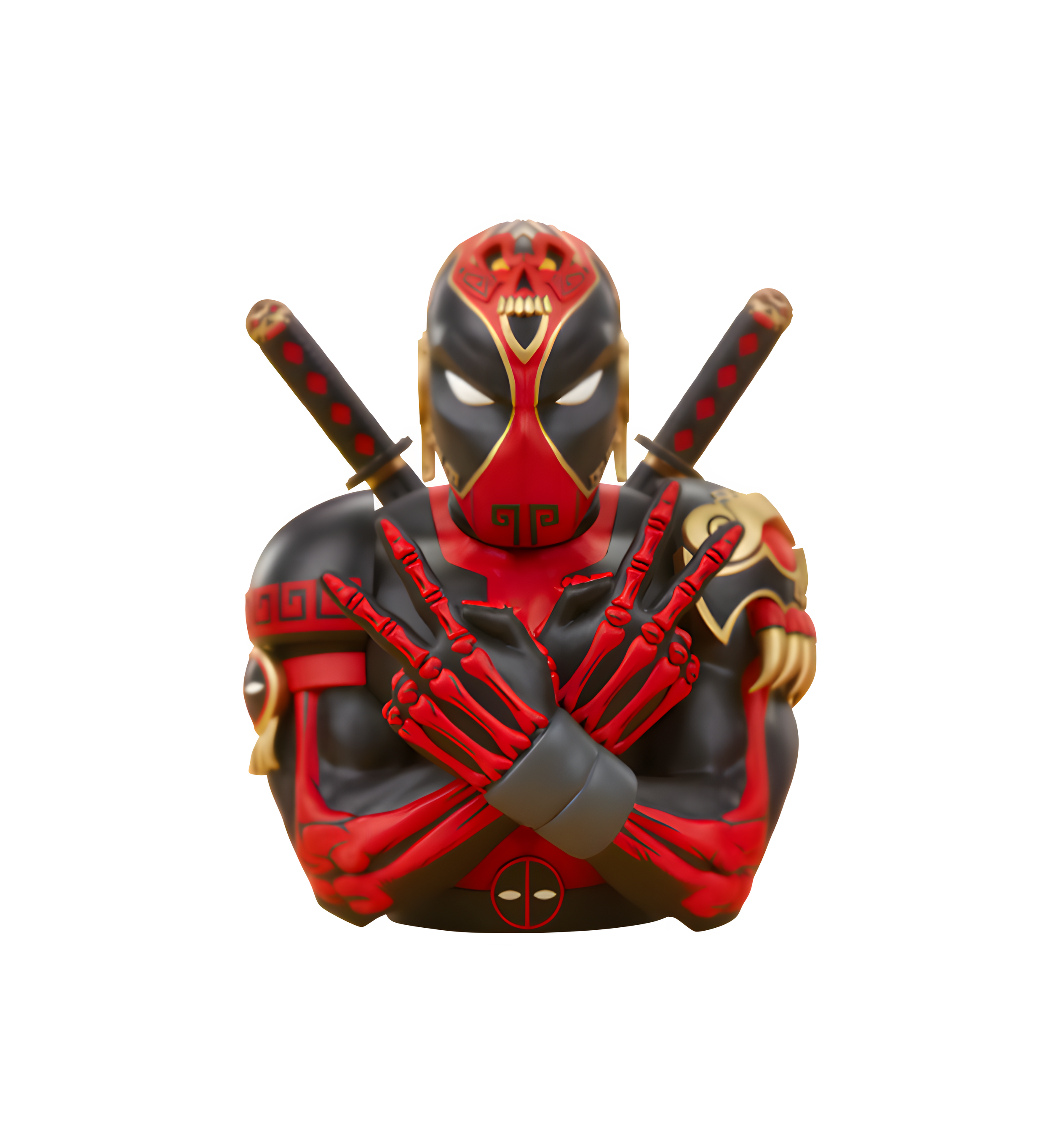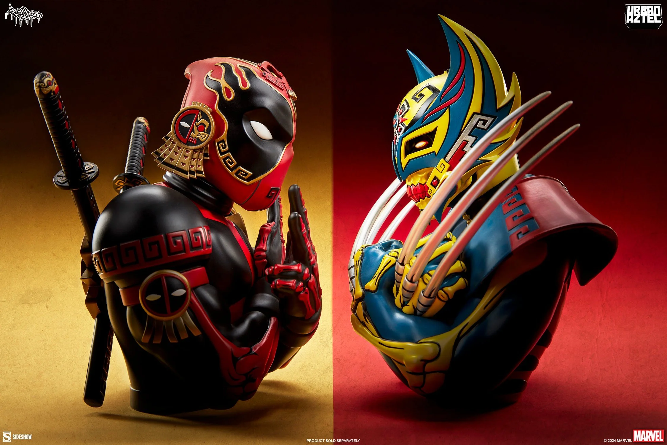 The Merc with a Mouth is here to kick your Aztec! Pop culture meets ancient culture in the Deadpool Designer Collectible Bust by artist Jesse Hernandez, which reimagines Wade Wilson with a gold-accented Maya and Aztec influence. Sculpted as an homage to Urban Aztec’s own Wolverine designs, this exciting Marvel collectible lets his incredible style do all the talking.